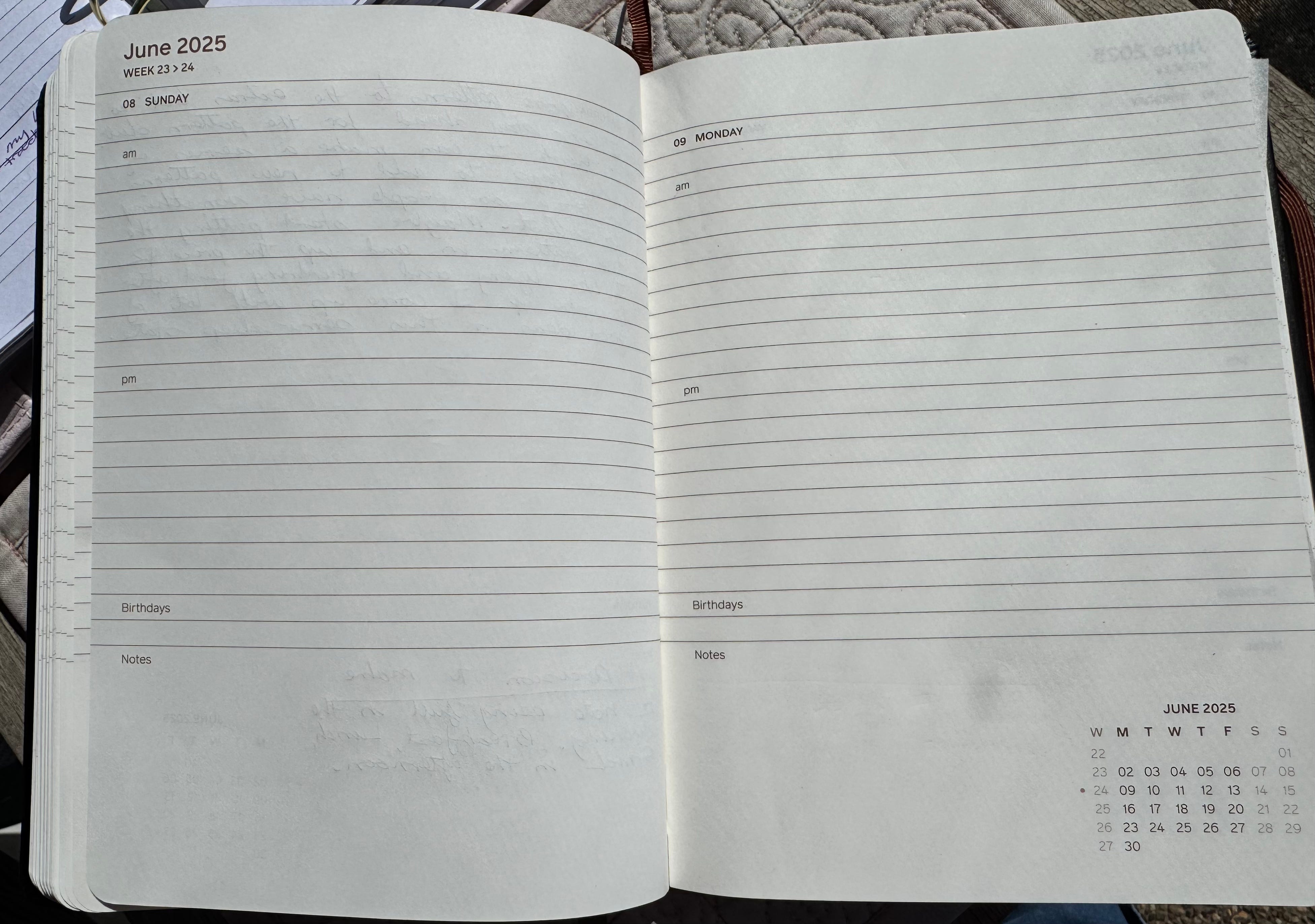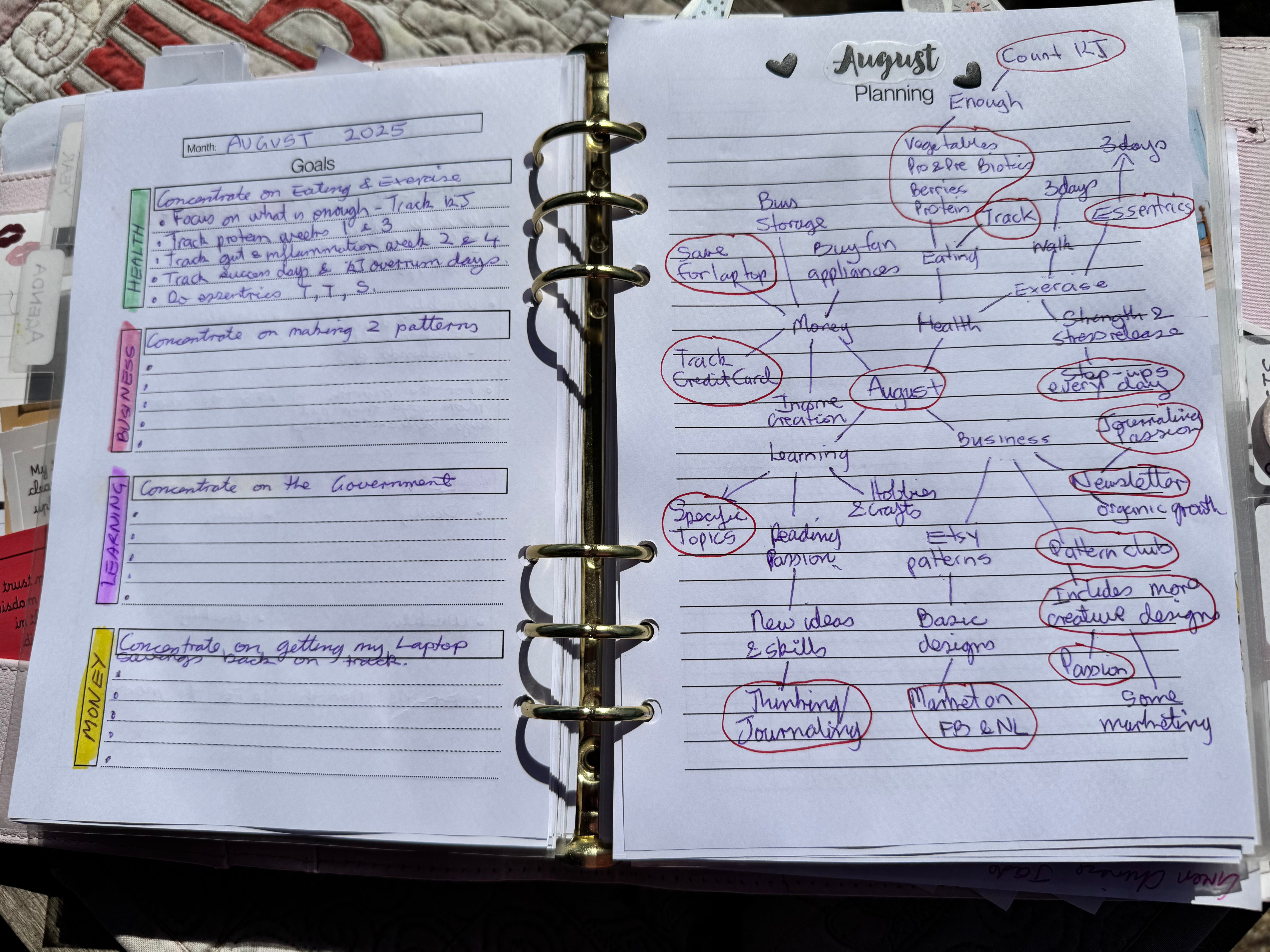 Just in case you like to journal, I can highly recommend including dedicated spaces at the bottom of each page for special thinking. I journal and plan over four pages each day and at the bottom of each page I have space for: