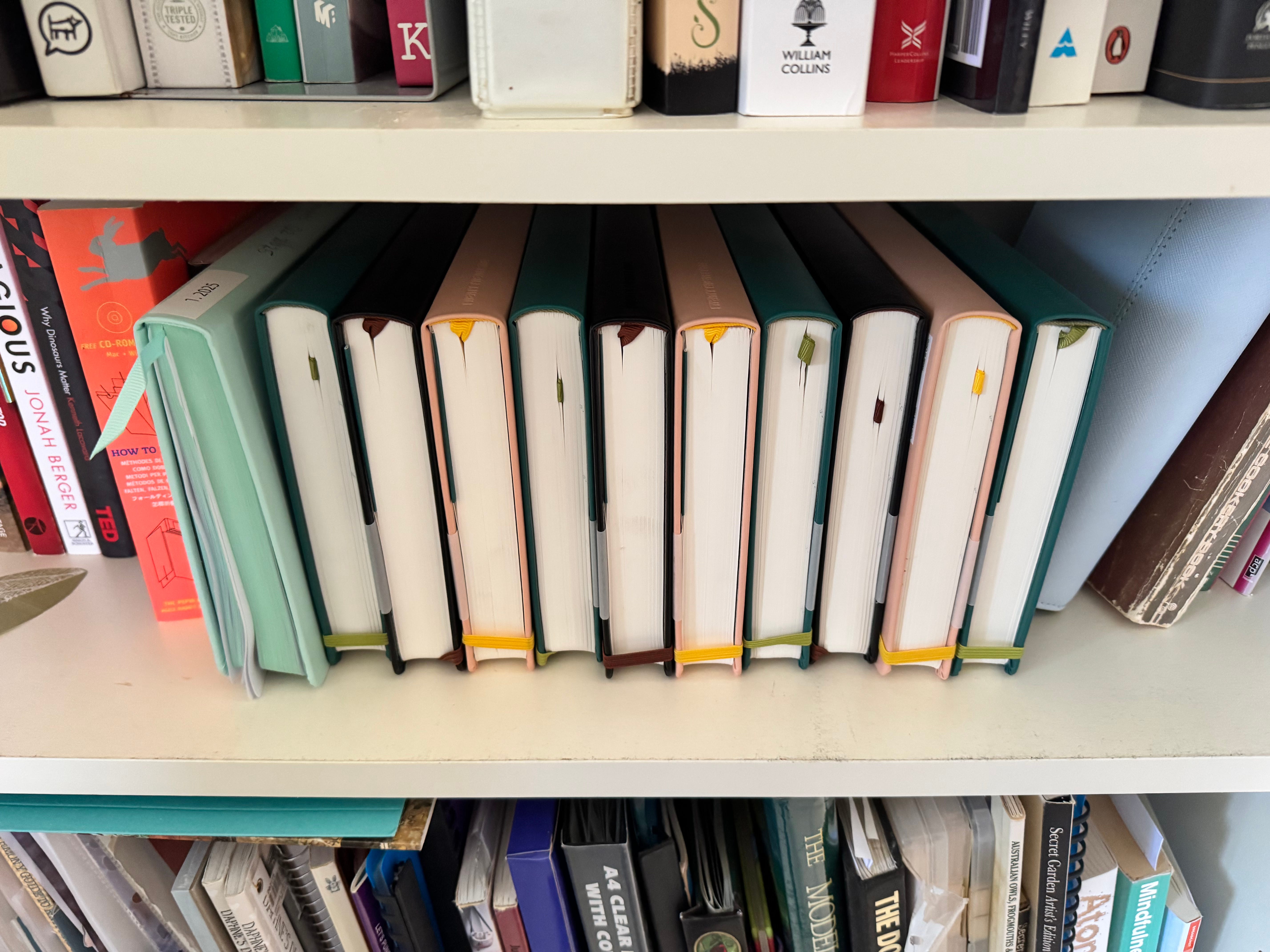 I bought a whole lot of the diaries. They were $5 instead of $60. They are lovely leather bound, lay flat, hard cover books. They hold about 3 months of journaling each.