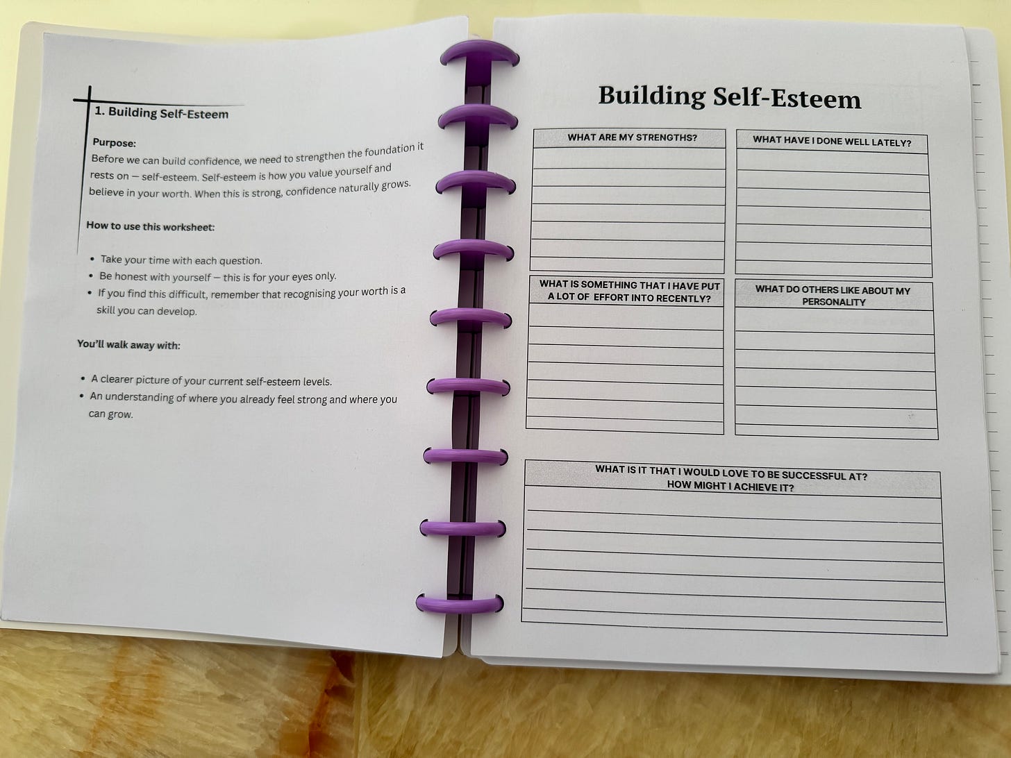 I used Chat GPT to help me fine tune a self-confidence journey. I came up with the idea. I designed some worksheets that I wanted to fill in for myself and I decided the daily journal pages should be the same as the ones I use now. I then asked Chat GPT to refine the names of the worksheets and put them in a logical order. It suggested that I include a one page intro for each work sheet to help explain it. It then asked if I wanted a program overview page to introduce the journal. Sure, I said. It sounded like a good idea. The last suggestion was a welcome letter including my personal experience to make it all sound personal and encouraging. Why not?